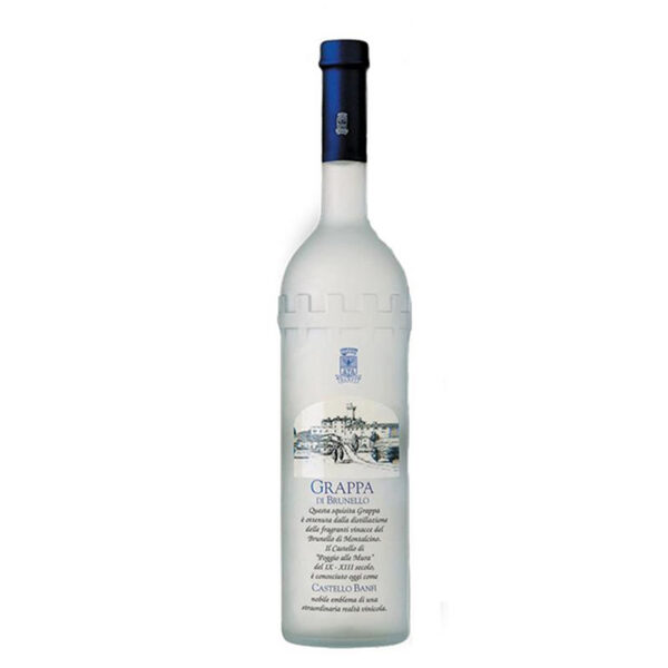 1 grappa di qualità superiore BRUNELLO ottenuta dalle bucce degli acini del Brunello di Montalcino Castello Banfi (700ml). Gradazione 43%.