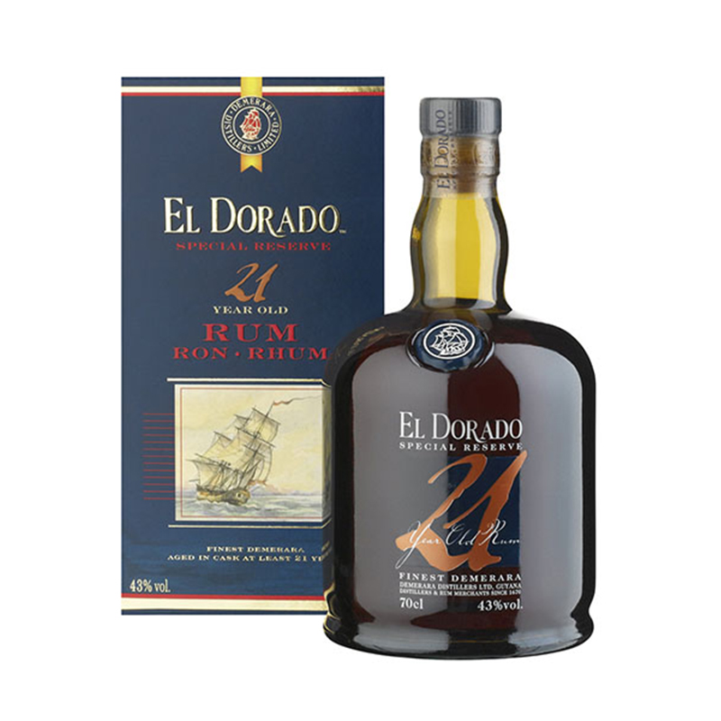 Il Rum El Dorado 21 Anni è una preziosa e superba espressione di rum Demerara, invecchiato per 21 anni in botti di Bourbon. I suoi aromi sono profondi, intensi e complessi, con note di miele, legni nobili, frutta secca, tabacco dolce e miele in evidenza.