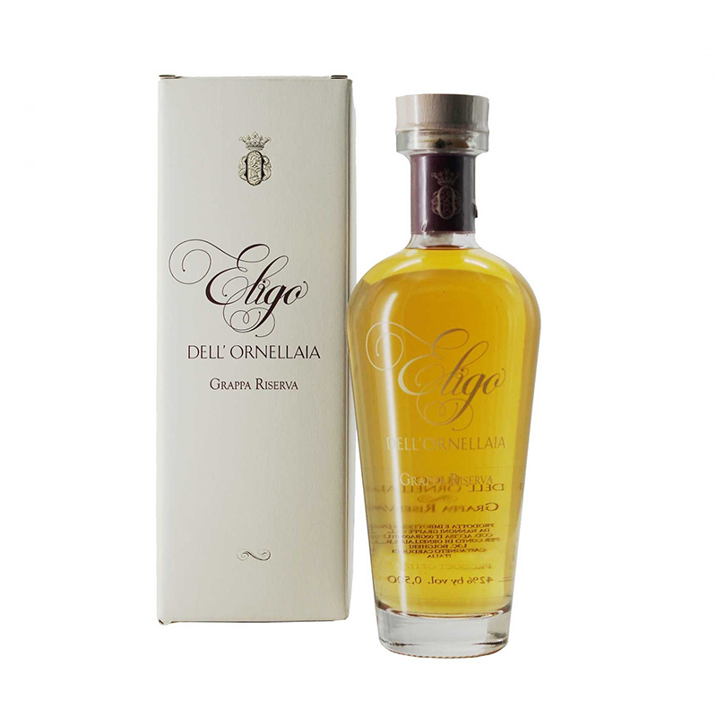La Grappa Riserva “Eligo” è una grappa stravecchia che ha sostato per almeno 36 mesi in botte, dal colore dorato intenso e dal bouquet ampio e complesso di cannella, cacao e tabacco. La consistenza è setosa e il gusto morbido, ricco, strutturato e persistente. Gradazione alcolica: 42%